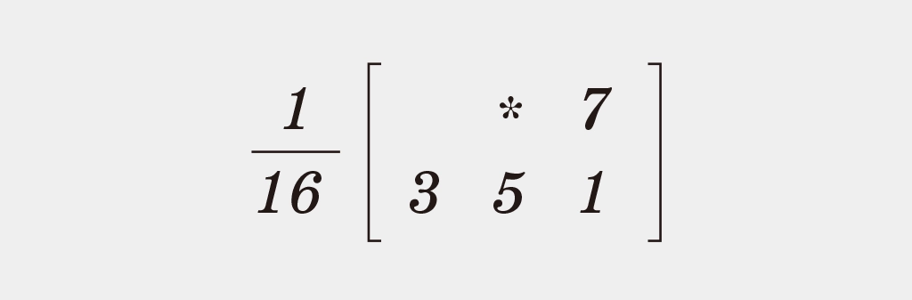 誤差拡散の中で最も有名で、基本となる方式が Floyd–Steinberg dithering です。
